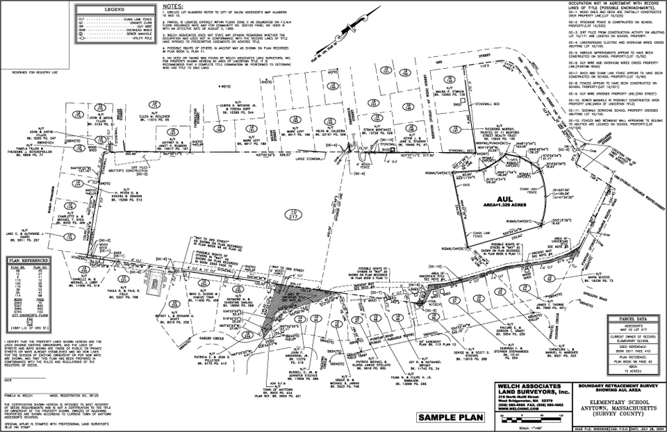 Boundary SURVEYSAn accurate boundary survey is essential to the success of any project. The process involved in performing this type of survey is defined in CMR 250 6.01. Buildings and other site improvements are designed to meet local setback requirements, all of which are based on the surveyor's boundary survey. Included with a boundary survey is extensive research to discover and delineate any easements or restrictions affecting a site. Mapping these issues on the boundary survey is critical to the design process. Welch has performed hundreds of boundary surveys for major projects including: