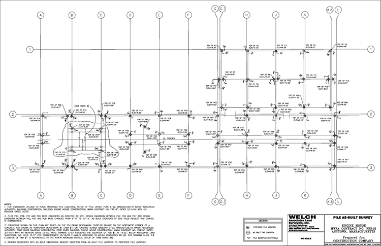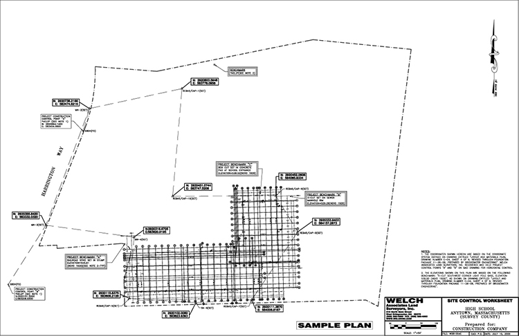 Welch Surveyors has been providing construction layout services to prominent New England contractors since 1993.  Our field surveyors have substantial experience laying out multi-story buildings, monitoring Amtrak rails, providing site layout and performing as-built surveys.  Our crews are supported by an office staff that are experts in the review of architectural and structural design plans.  They assist the contractor and the design team in the resolution of discrepancies before they become a problem during construction.  Welch Surveyors provides the following services to contractors: